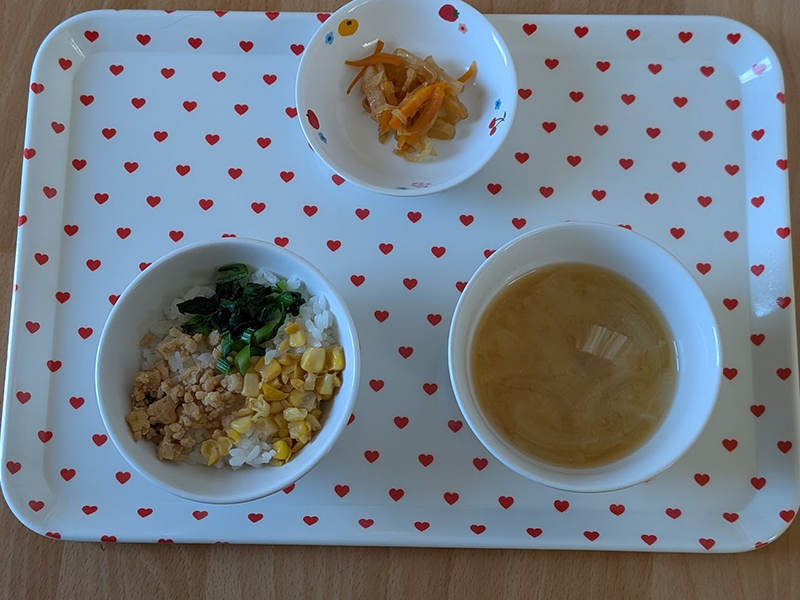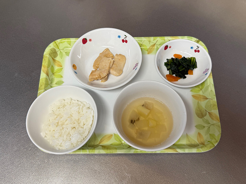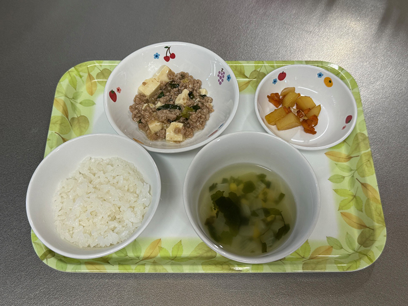 2025/08/04 2025年7月28日(月) メニューは三色丼、大根のきんぴら、味噌汁 2025年7月29日(火) メニューはごはん、和風麻婆豆腐、おいもの甘辛煮、中華スープ 2025年7月30日(水) メニューはごはん、ぶりのレモン揚げ、青菜のお浸し、ごぼうの味噌汁 2025年7月31日(木) メニューはごはん、鶏肉の香味焼き、青菜と人参の胡麻和え、野菜椀 2025年8月1日(金) メニューは ごはん、チンジャオロースー、なすの揚げ浸し、春雨スープ
