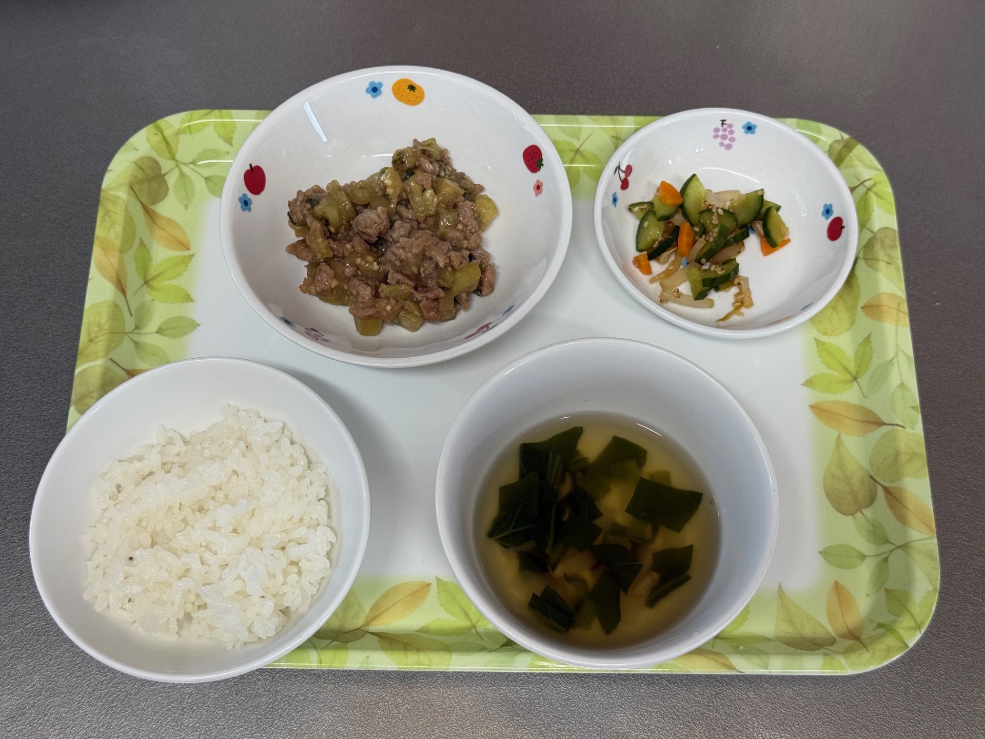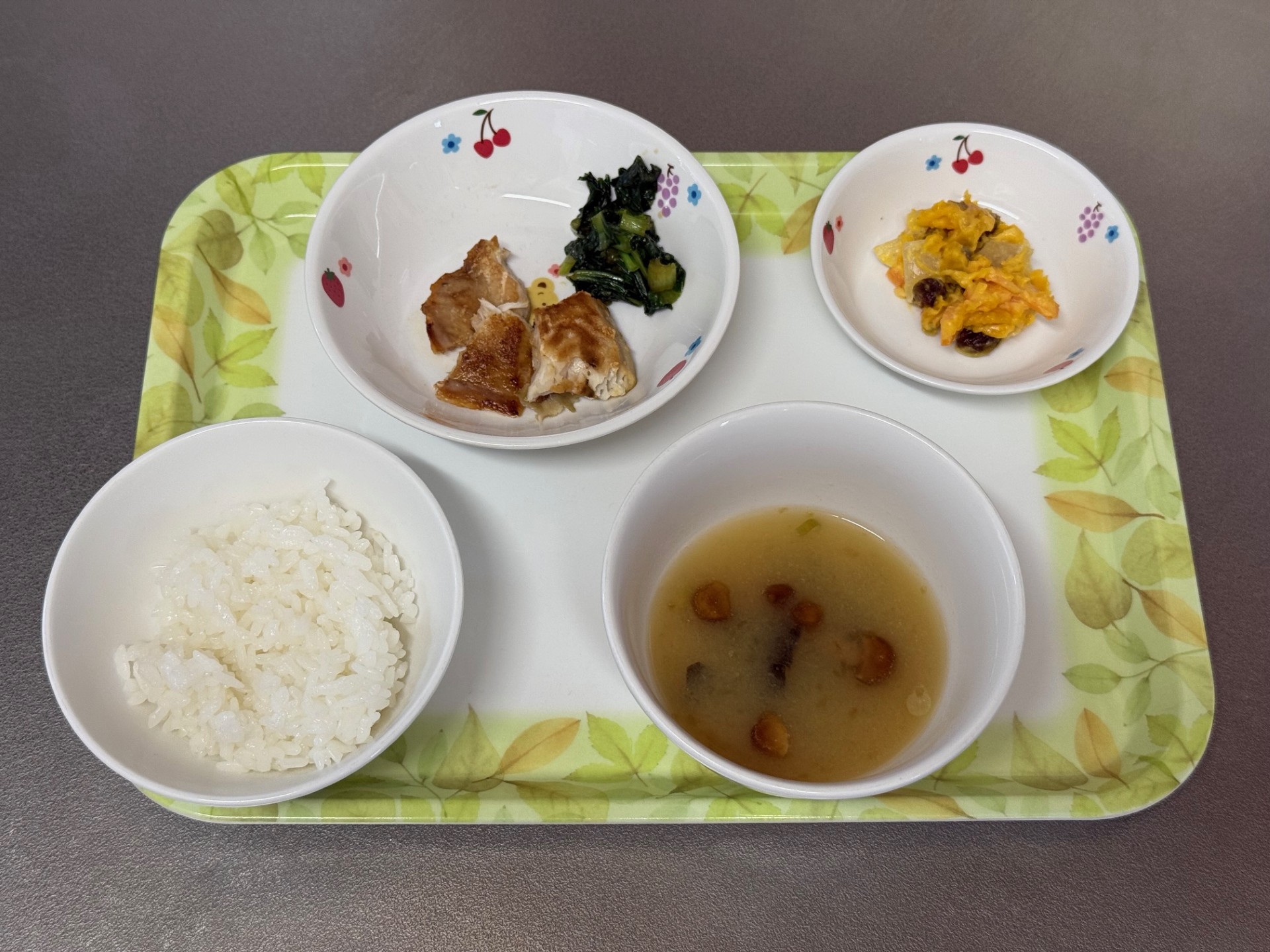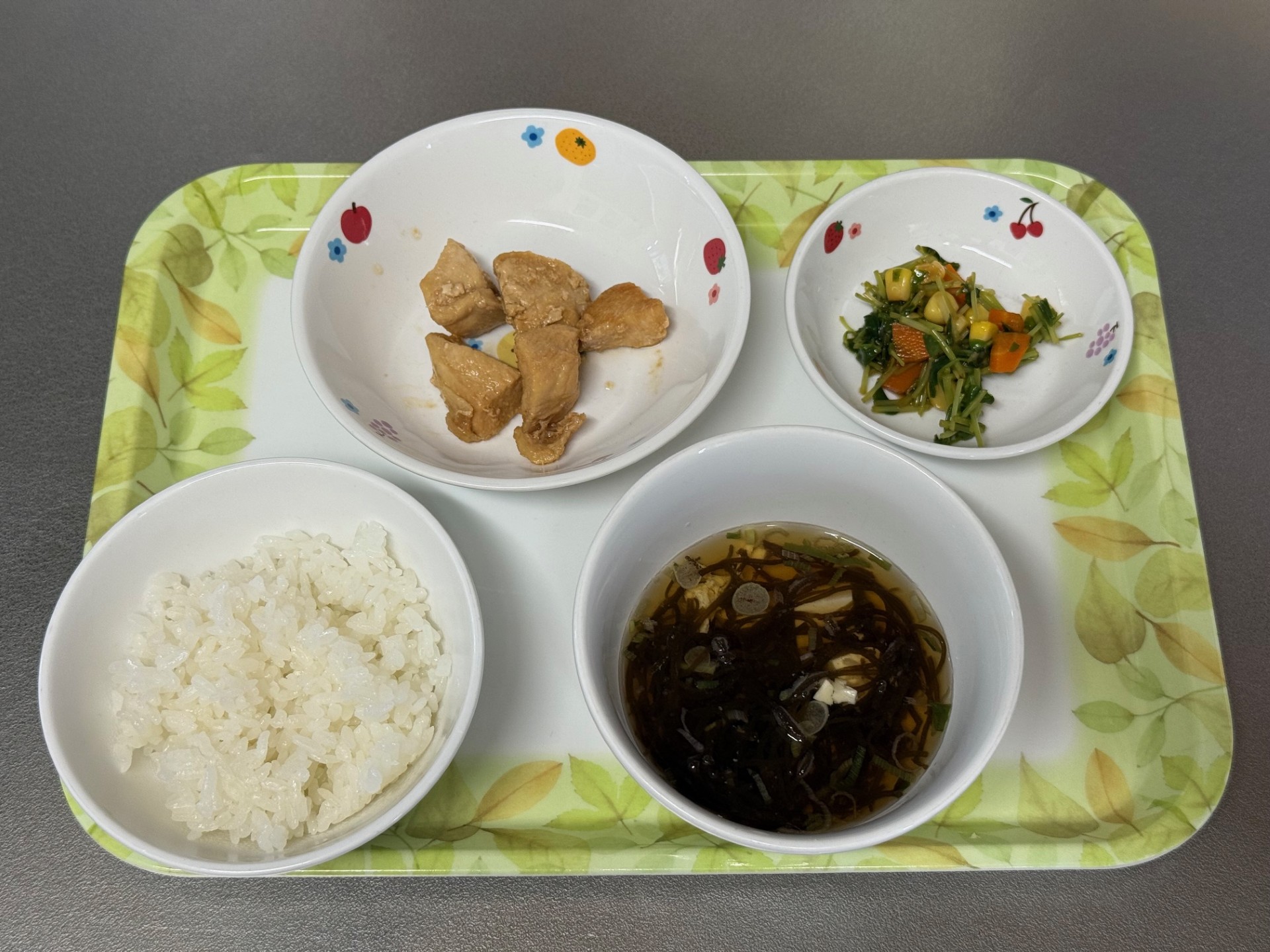 2025/09/18 2025年9月8日(月) メニューはごはん、甘辛チキン、豆苗とコーンのサラダ、もずくスープ 2025年9月9日(火) メニューは、菜飯、魚のステーキ、じゃがいもと人参のきんぴら、キャベツの味噌汁 2025年9月10日(水) メニューはごはん、麻婆なす、もやしときゅうりのナムル、玉ねぎとシイタケのスープ 2025年9月11日(木) メニューはごはん、鶏肉と里芋の煮もの、青菜の梅和え、蓮根と厚揚げの味噌汁 2025年9月12日(金) メニューはごはん、魚の塩焼き、かぼちゃのサラダ、味噌汁
