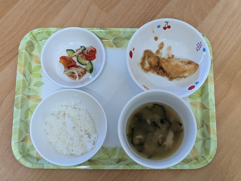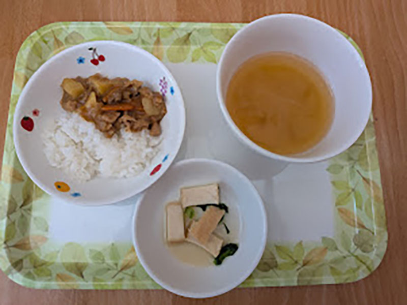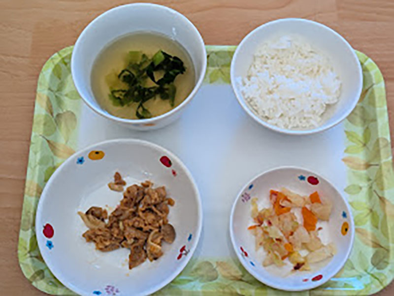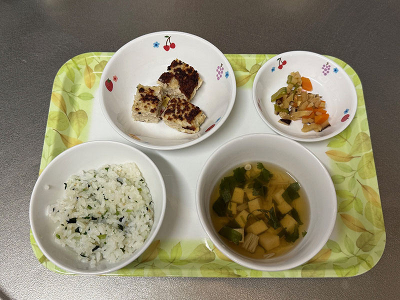 2025/10/10 2025年10月6日(月) メニューはごはん、厚揚げと青菜の甘味噌炒め、もやしと人参の和え物、切干大根の赤だし 2025年10月7日(火) メニューはごはん、白身魚の和風ムニエル、トマトのマリネ、スープ 2025年10月8日(水) メニューはごはん、豚肉ときのこのトマト味噌炒め、キャベツのおかか和え、すまし汁 2025年10月9日(木) メニューは桜ごはん、豆腐のお焼き、春の煮物、三つ葉のすまし汁 2025年10月10日(金) メニューは遠足のため各自お弁当