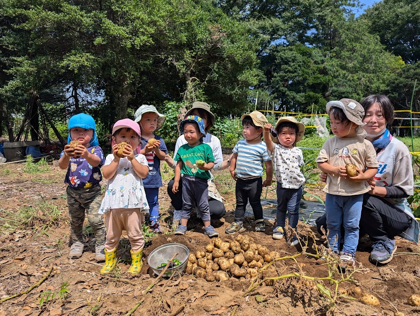 うさぎ組(2歳児)は畑まで歩いて