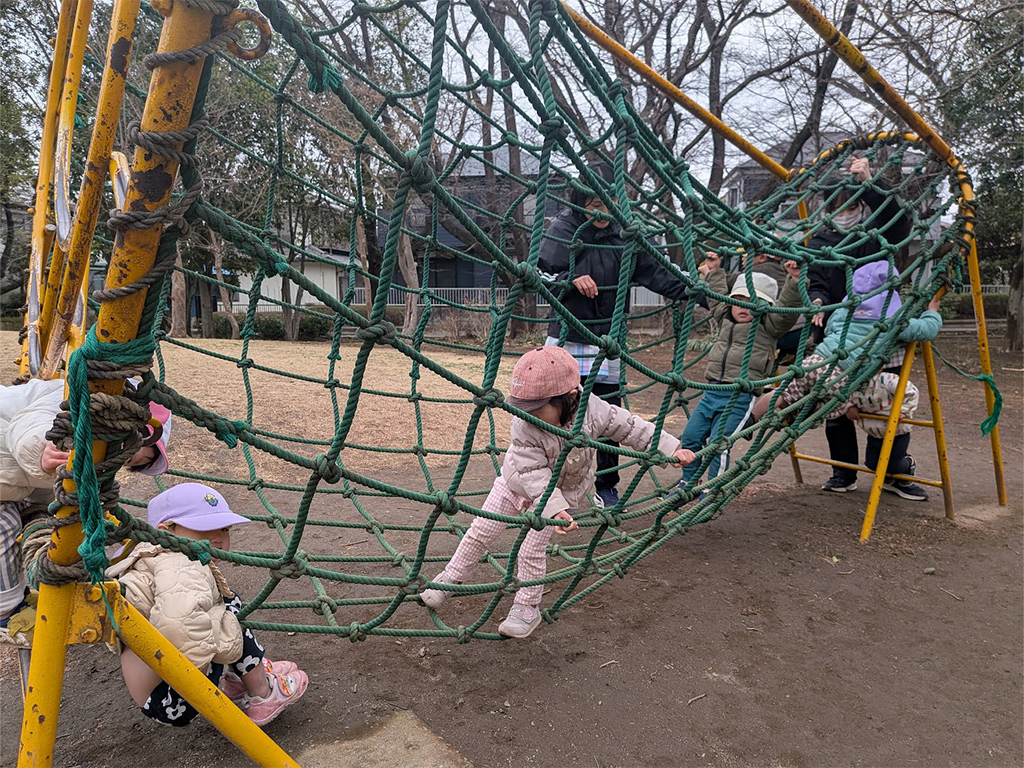 ロープの遊具が楽しくてユラユラ揺らす子もいます。